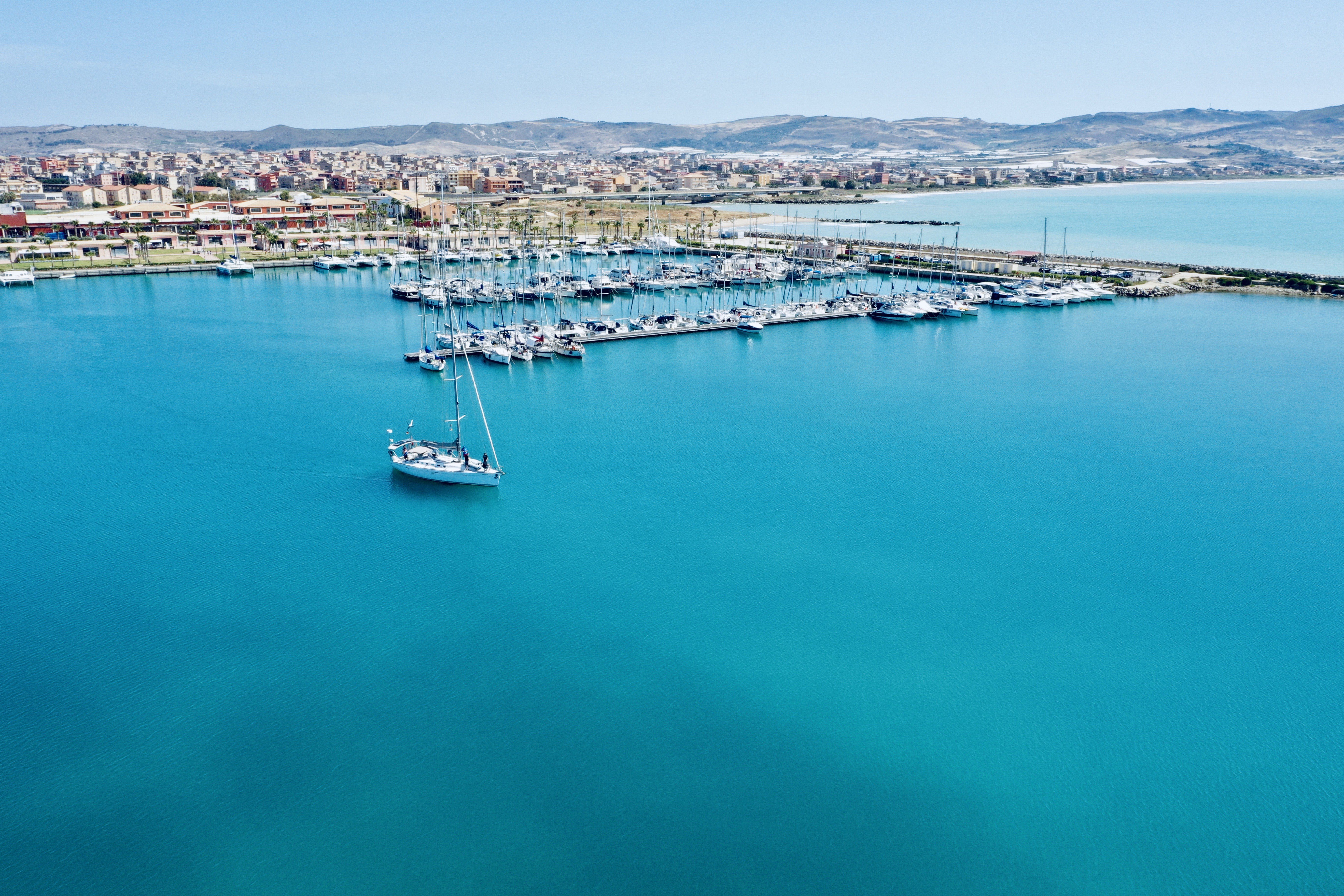 Eine Nacht und 1/2 Tag noch bis Licata, etwa auf der Hälfte der Südküste Siziliens gelegen. Die Nacht hat es in sich. Von Flaute - Motor an bis 2. Reff haben wir alles dabei. Jeder Wachwechsel mit einer neuen Bedingung. Das Wetter ist noch gut und so ankern wir am Beach westlich der Licata Mole um ein letztes Mal für 2021 ein mediterranes Synchronschwimmen der Männer einzuberufen.
