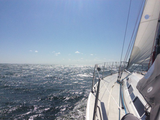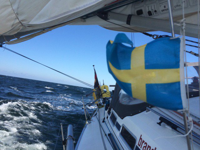 So schön es ist, wir müssen weiter - die Prognosen kündigen max. 8 Kn Wind von achtern - also starten wir am Freitag wiederum um 3:30 Uhr, leider jedoch nur mit der Erkenntnis, dass der Strom über die Nachtstunden ausfiel und die Batterien leer gesaugt sind. Zuleitung reparieren, Wecker auf 5 Uhr verstellen und raus gehts. Den Freitag starten wir gleich im Wachsystem und so erlebt die erste Wache einen wunderschönen Sonnenaufgang an der Ostseite Bornholms. Glücklicherweise haben wir selbst so früh schon 10 Knoten Wind und so läuft es bis ins Bornholmsgatt super. Mit den riesigen Ozean Pötten kommt auch der Leichtwind. Es folgt der einzige Tarnabschnitt von ca. 10 Seemeilen, bei der wir aus Sicherheitsgründen die Motorunterstützung benötigen. Wir schlängeln uns durch die Freitags-Rush-Hour des Verkehrstrennungsgebietes zwischen Dänemark und Schweden. Als es verkehrstechnisch ruhiger wurde, ging sofort der Spinnaker hoch. Theoretische ETA lag bei Samstag (!) zwischen 2-3 Uhr. Petrus aber war auf unserer Seite, der Wind nahm zu und wir machten 23 Uhr fest in Klintholm auf der dänischen Insel Moen.