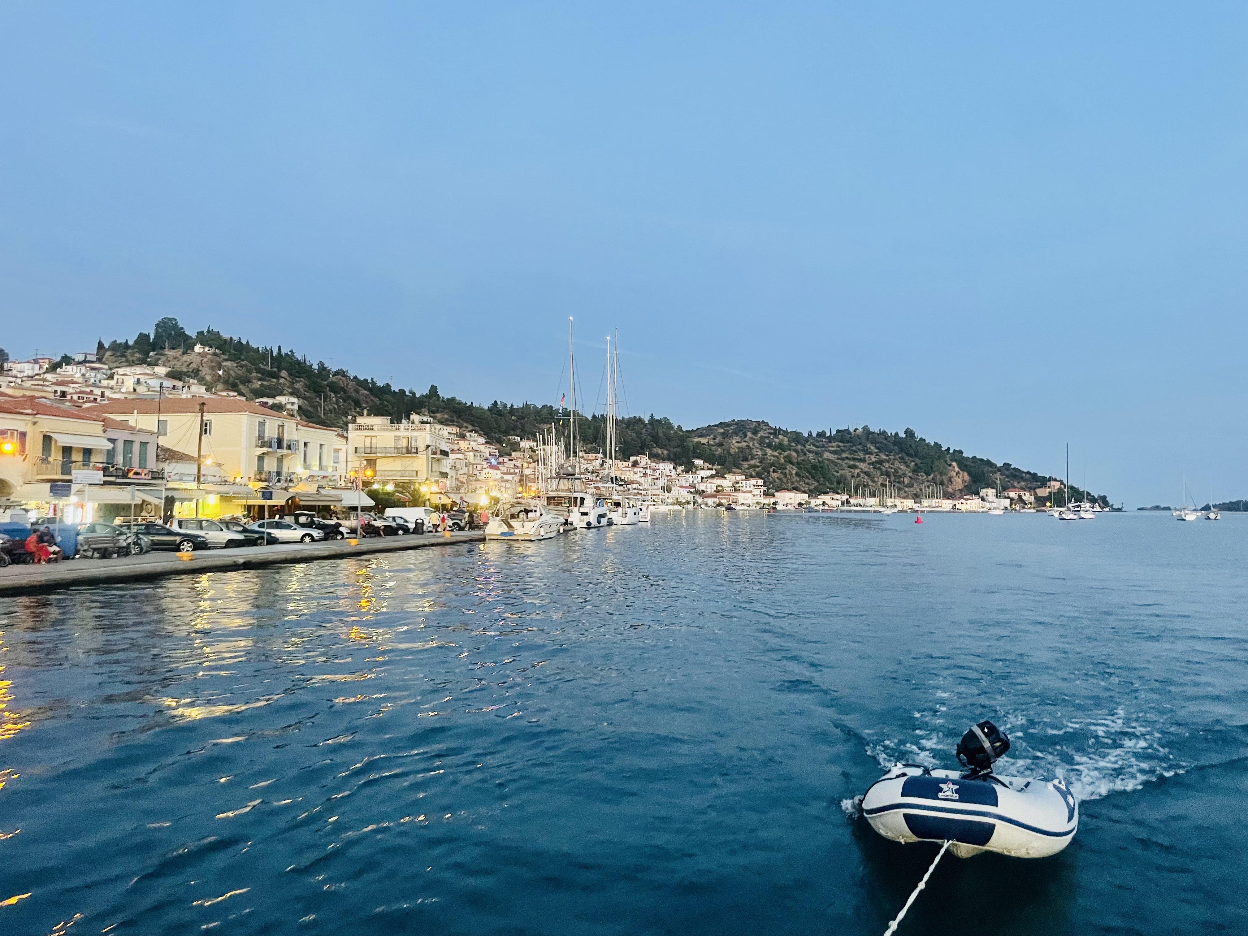 Immer geeignete Orte für easy Crewwechsel im Blick, klatschen in Porto Cheli am Fährkai die Crews ab, die Einen reisen mit Träne im Auge ab, während die Anderen ohne ihr Gepäck rekrutieren. Zum Glück hat der Sonnengott wieder übernommen. Unsere Freunde Ida und Andrea von #Proshop Billabon kümmern sich um die Garderobe derer, die der BER Airport beharrlich ohne Gepäck nach Athen entsandte. Aber von solchen kleinen Stolpersteinen lassen wir uns doch die Reise nicht versauen und starten mit minus 1 Koffer. Der wird dann in Ermionida an Bord genommen, um weiter zu segeln nach Poros, Ägina, Porto Kagio und Korinthos. Stopp.... doch nicht. Auf dem Weg zum Kanal von Korinth und nach vorliegender Anmeldung der Durchfahrt kommt die nächste Wetterwarnung rein. 8 (in Worten acht) Bft auf der Golf v. Korinthos Seite. Ach Nööööööööö. Wirklich? Gibt es Alternativen? Ja. Athen. Wochenende nach Atrhen: niemals! 1000ende Charterschiffe starten dann mit uns gemeinsam. Nein. Alternative 2 Salamina. OK, das Hafenhandbuch ließt sich wie ein Horrorroman. Entscheidung: Salamina. Nichts von alledem stimmt. Toller Hafen, nette Leute, unproblematische Ab- und Anreise. Aber schon in der ersten Nacht hier ballert es ordentlich durchs Hafenbecken. Egal, gebunkert ist, wir legen ab. Fliegen Halbwind vorbei an Ägina, dann dem Vulkanfelsen Methana nach Poros und schmieden Pläne in der Taverna. Auf die Kykladen soll es gehen.