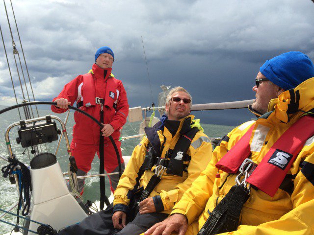 Start: Freitag 27.6.2014 im Wassersportzentrum, bei MEER-SEEN rollt gegen 9 Uhr ein Crewbus vom Firmengelände. Besetzt am Steuer mit einer Seglerin und 5 Seglern. In Barth angekommen, wurde die SY MEER-SEEN, eine 38Match, an den Mastenkran verholt, 1 Meter von der Ladeklappe entfernt beladen. Die Crew teilt sich in den Frischwarenbesorgungsdienst und die Technik Abteilung. Letztere rüstet den Kahn aus, baut zweite Verbraucherbatterie ein und geht dem Segelmacher Paul Konow zur Hand, der ruckzuck just in Time mal eben noch eine Racing Kuchenbude aufbaut. Danke an dieser Stelle. Frischwaren gegen Skorbut bunkern und nach der Sicherheitseinweisung heißt es um 16 Uhr: "Leinen los". Bei frischen 5 Bft stellenweise auf die Nase kämpfen wir uns die Bodden über Barhöft vor nach Hiddensee zum Gellenstrom. Unter Großsegel und Genua 3 rauschen wir Halbwind die W-Küste Hiddensees entlang. Was bis Dornbusch ein Ferienkurs war, entpuppt sich Freitag gegen 20:30 Uhr bis Arkona als Amwind "uiuiui-geht-das-die-ganze-Nacht-so"? Kurs. Um 23 Uhr haben wir noch 46 sm bis Rønne, Bornholm vor uns, der Wind aus Osten nimmt zu, wir setzen Reff 2 und gehen Amwind durch die Nacht.