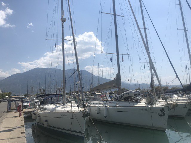 Der Abend wird länger, dennoch treffen alle sieben Segler gegen 9:30 Uhr im SkippersCaffe der Kalamata Marina zum Frühstück ein. Wettercheck, Einkaufslisten schreiben, Verteilung der zu kochenden Gerichte an Bord. Wir planen mit 4 Tagen nonstop und offline auf See.