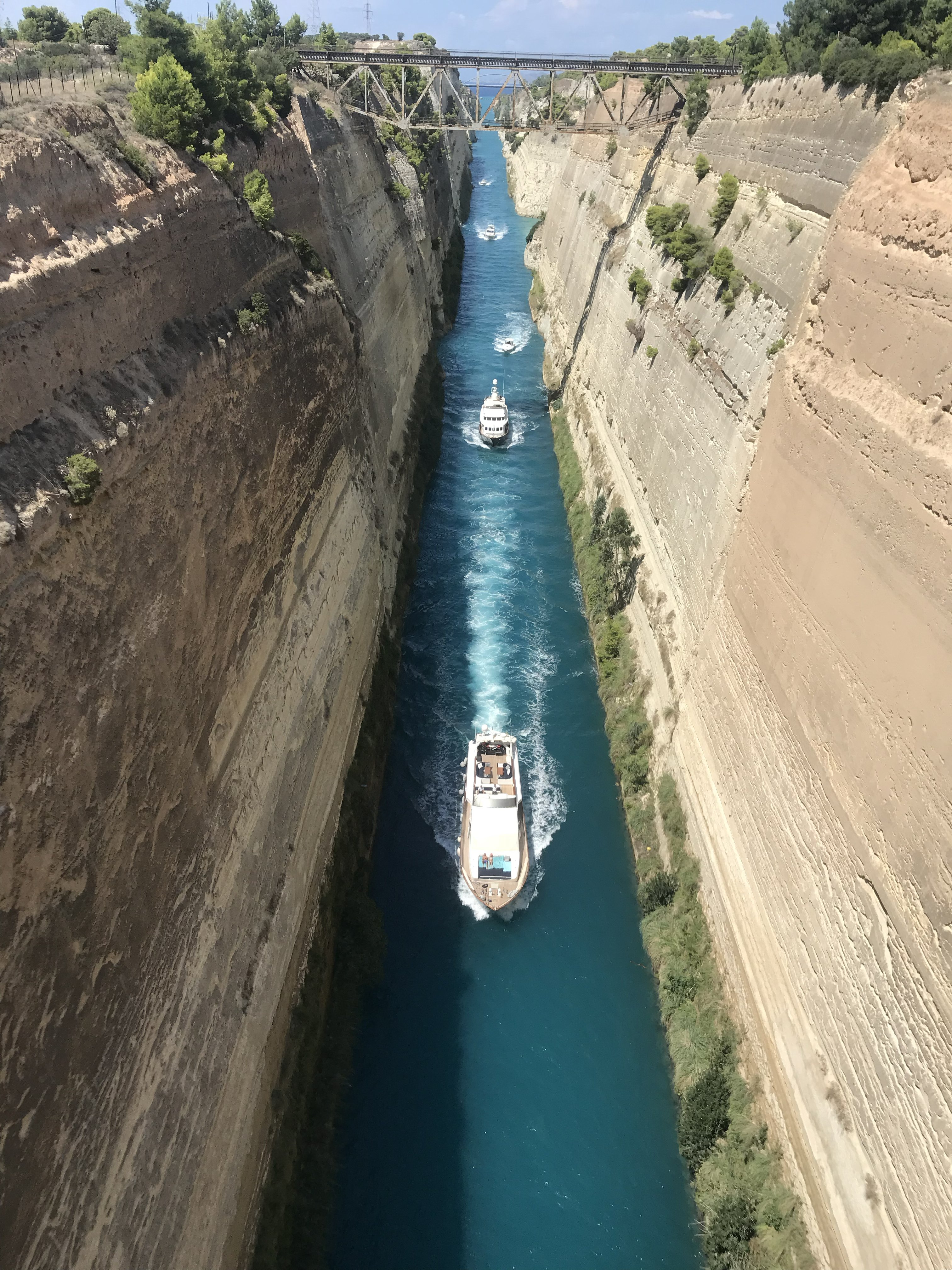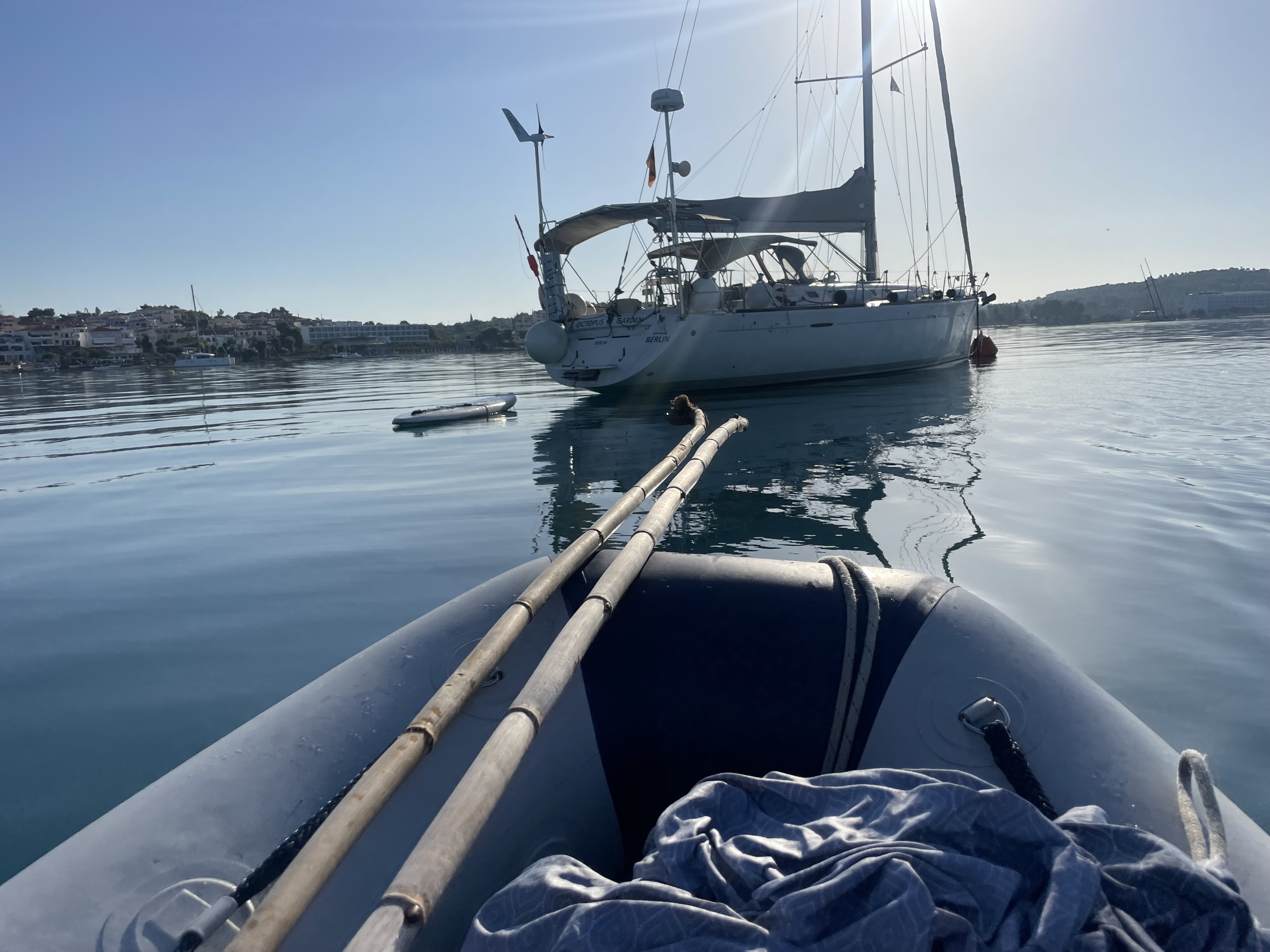 Immer geeignete Orte für easy Crewwechsel im Blick, klatschen in Porto Cheli am Fährkai die Crews ab, die Einen reisen mit Träne im Auge ab, während die Anderen ohne ihr Gepäck rekrutieren. Zum Glück hat der Sonnengott wieder übernommen. Unsere Freunde Ida und Andrea von #Proshop Billabon kümmern sich um die Garderobe derer, die der BER Airport beharrlich ohne Gepäck nach Athen entsandte. Aber von solchen kleinen Stolpersteinen lassen wir uns doch die Reise nicht versauen und starten mit minus 1 Koffer. Der wird dann in Ermionida an Bord genommen, um weiter zu segeln nach Poros, Ägina, Porto Kagio und Korinthos. Stopp.... doch nicht. Auf dem Weg zum Kanal von Korinth und nach vorliegender Anmeldung der Durchfahrt kommt die nächste Wetterwarnung rein. 8 (in Worten acht) Bft auf der Golf v. Korinthos Seite. Ach Nööööööööö. Wirklich? Gibt es Alternativen? Ja. Athen. Wochenende nach Atrhen: niemals! 1000ende Charterschiffe starten dann mit uns gemeinsam. Nein. Alternative 2 Salamina. OK, das Hafenhandbuch ließt sich wie ein Horrorroman. Entscheidung: Salamina. Nichts von alledem stimmt. Toller Hafen, nette Leute, unproblematische Ab- und Anreise. Aber schon in der ersten Nacht hier ballert es ordentlich durchs Hafenbecken. Egal, gebunkert ist, wir legen ab. Fliegen Halbwind vorbei an Ägina, dann dem Vulkanfelsen Methana nach Poros und schmieden Pläne in der Taverna. Auf die Kykladen soll es gehen.